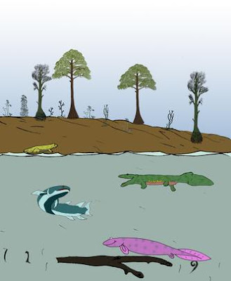 Although actinopterygian radiation seems to have made the most significant footprint in vertebrate diversity, with more than 30 000 Recent species, there are also scientists who looking into the origin of the less successful group, the sarcopterygians, among which the tetrapods are the terrestrial ones – except that some escaped back to the water (sirenians, seals, cetaceans, and the like).